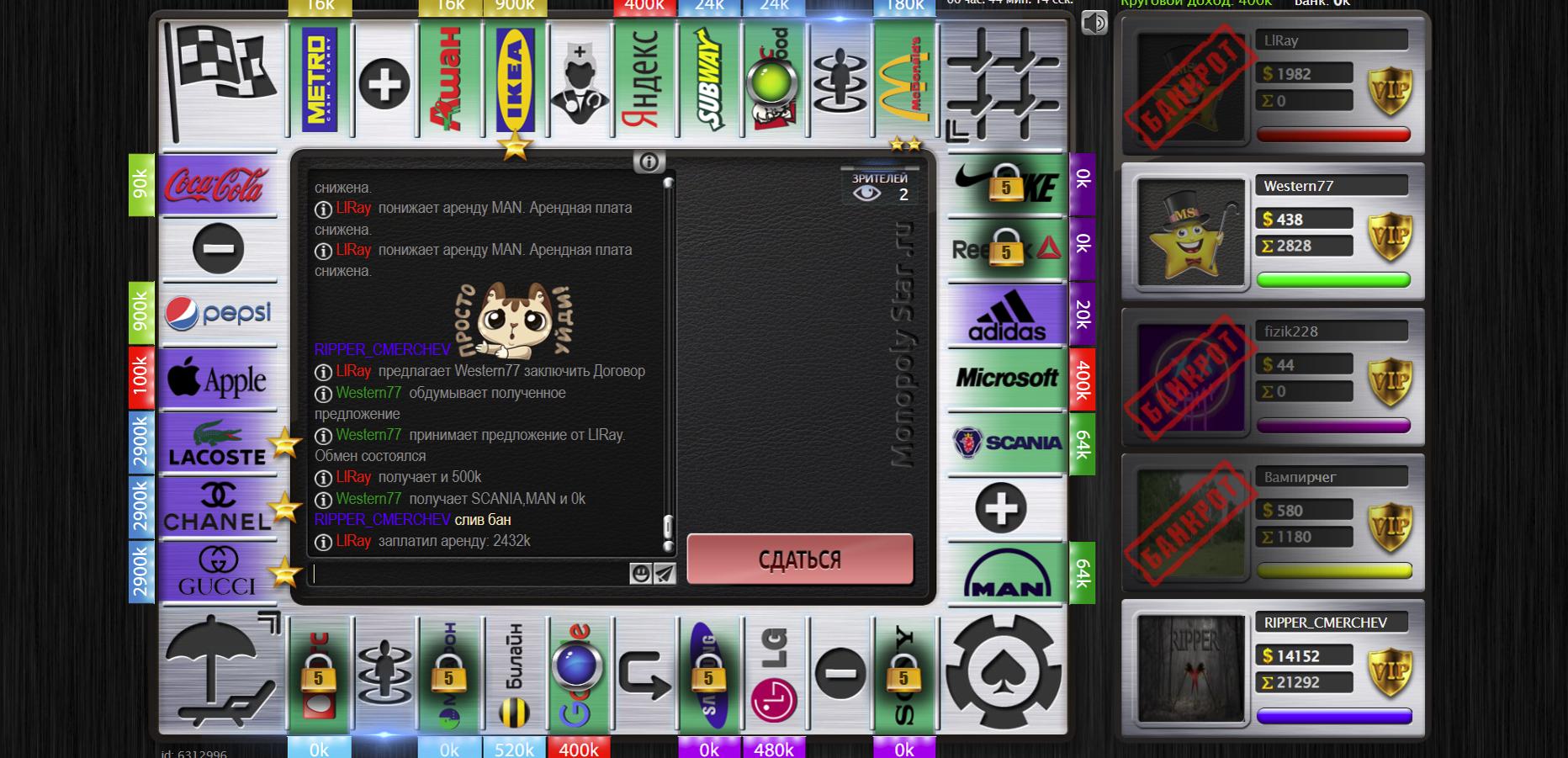 Аккаунты игроков Western77 и LlRay будут блокированы на 2-е суток.